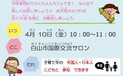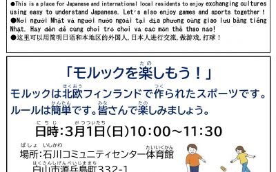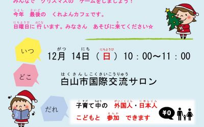 白山市国際交流サロンでは、日常生活のための日本語クラスを開いています。日本語を勉強したい方は、サロンに連絡してください。初級から上級までクラスは全て無料です。