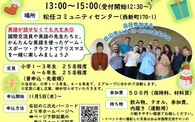 「申込開始 11/5(水)~」白山市の小学生対象!!! 英語が話せなくても大丈夫◎